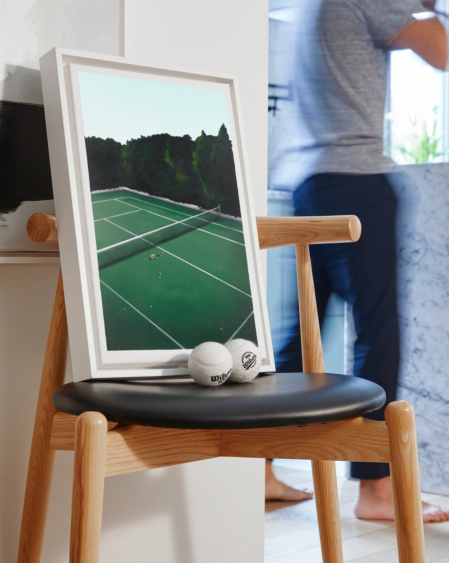 Imagine walking into your living space and staring at a pristine tennis court just waiting for match, set, love. Your living room is instantly transformed into a game between friends waiting to be played. Whatever it is about the sport, maybe the look in your rival's eyes as they anticipate defeat, or that loving high five post-match, invite that energy into the space with living art.