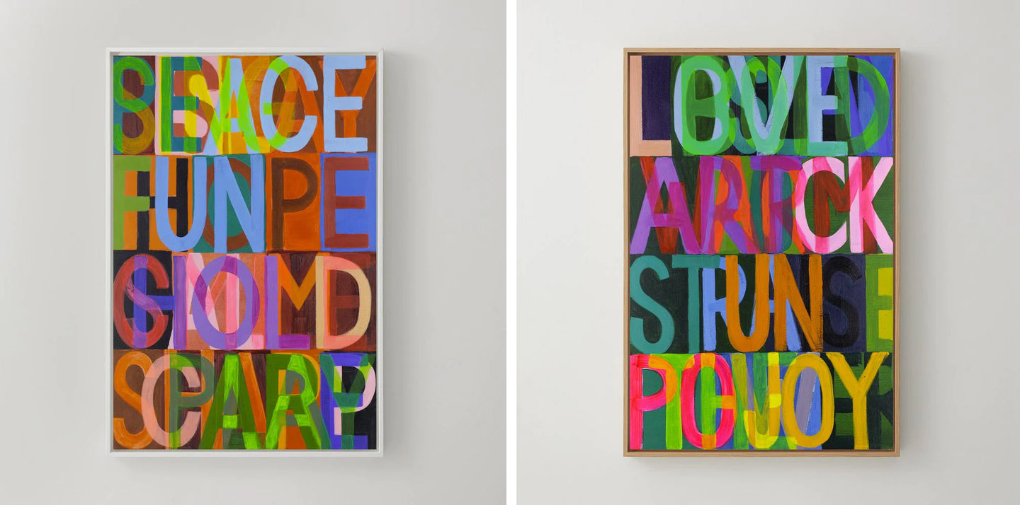 The final pairing says more than friends because the Proposal is the friendship ring turned commitment ring all in one (or two) beautiful paintings… for those who are about to get on bended knee, these abstract stunners are the perfect match. Hang one for me, one for you, and let the art say I do.