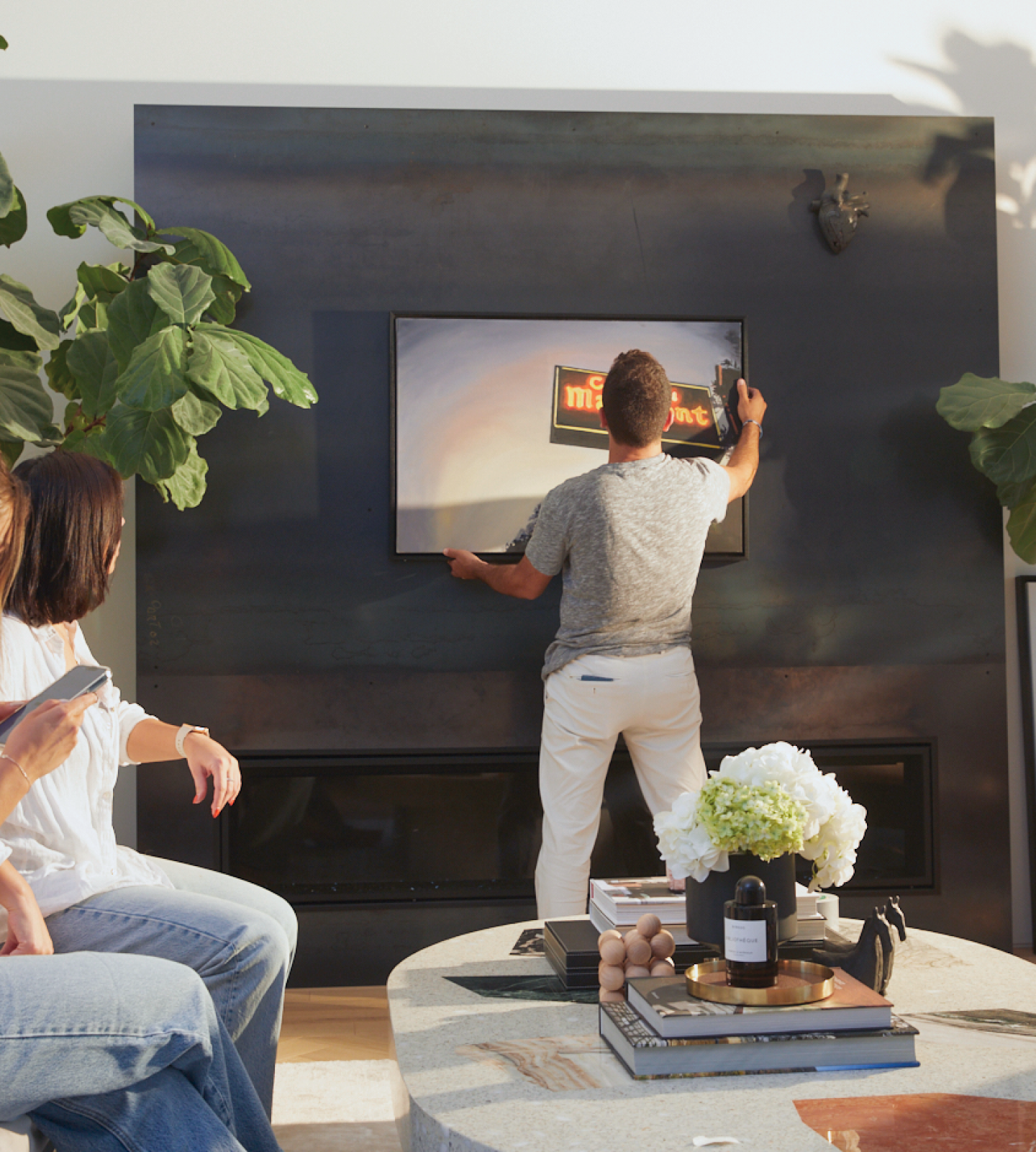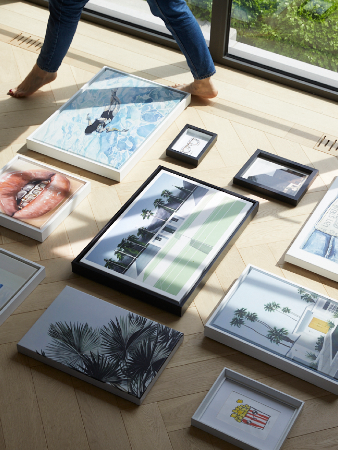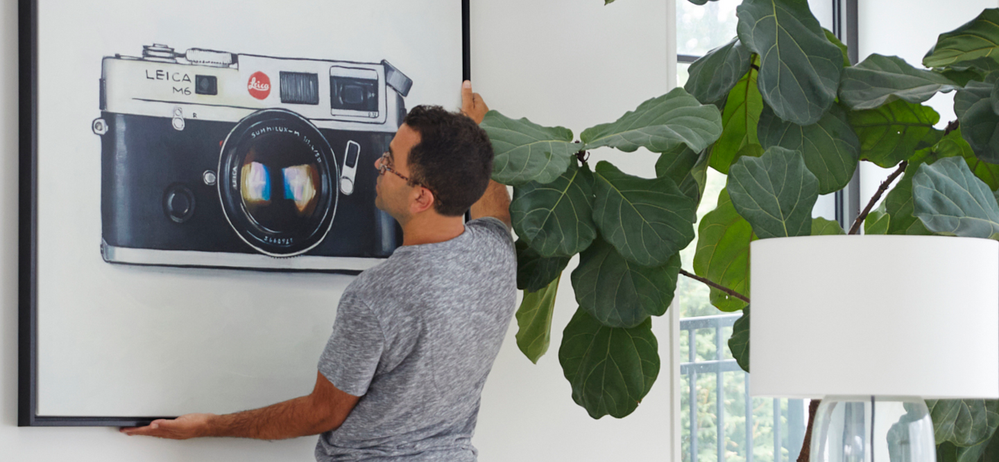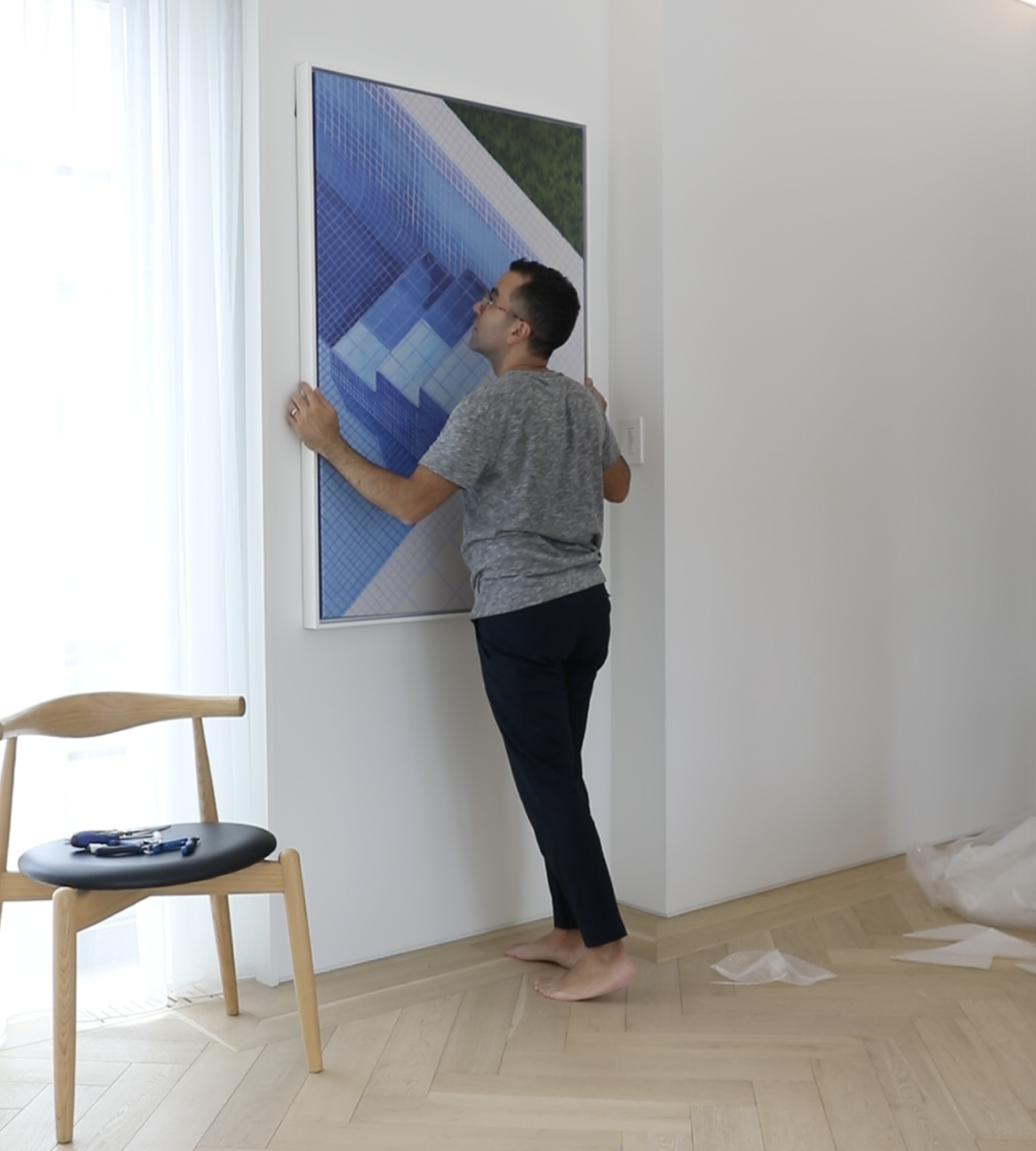Of course, the literal act of hammering a nail into a wall is pretty straightforward, but when it comes to hanging a framed (or not framed) canvas piece, there are a few golden rules that make the process super easy.