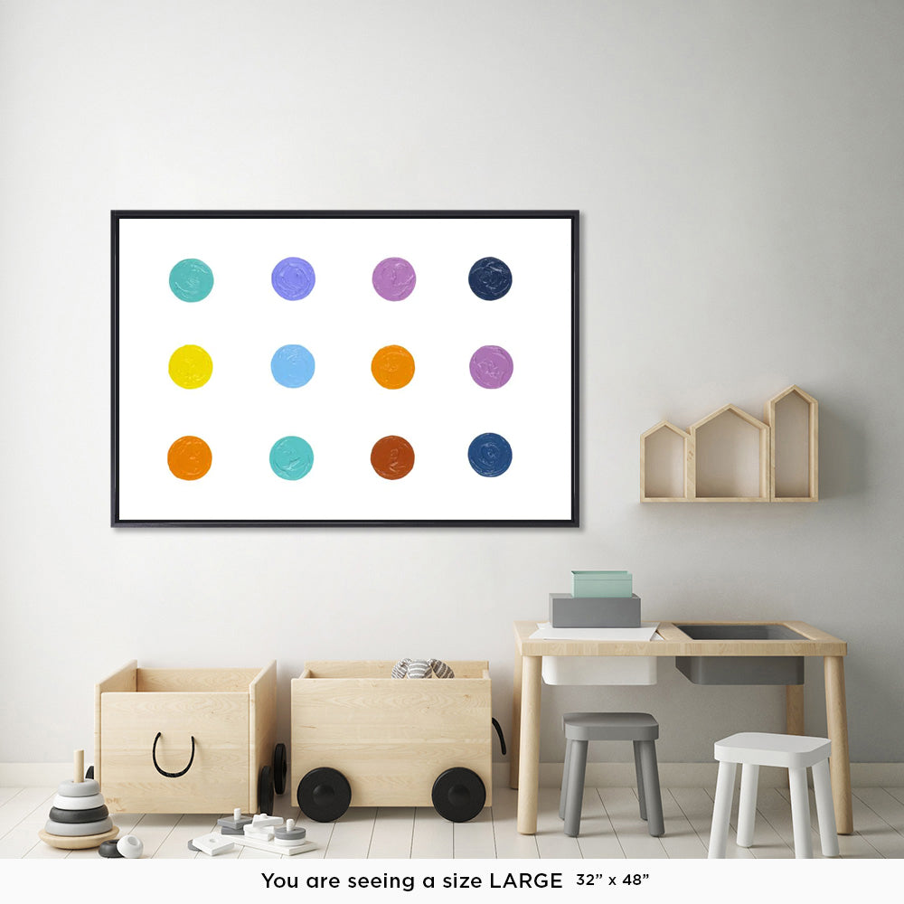 There are those paintings that tell the whole story, and then there are those that invite us to connect the dots. A colorful pop dot painting is an interactive way for your child’s mind to create pathways and imaginary designs as they drift off to sleep. Pops of color and sparks of imagination, what more could you ask from a painting?